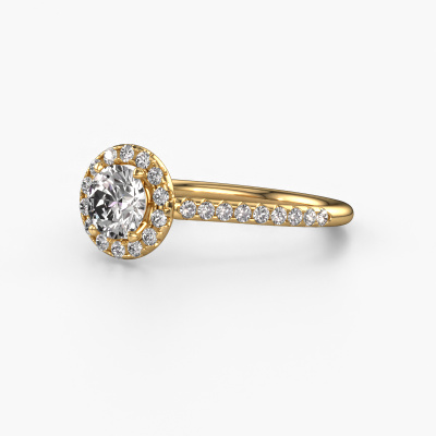 The ring shown above is called the Seline rnd 2. We call this type of ring a halo ring because it has one centre gemstone and a band that is also pave set with gemstones. The 14 Carat gold engagement ring is set with a round 0.60 crt diamond centre stone and the band is pave set with lab-grown diamonds. What makes this exclusive gold halo ring special are the smaller sized stones embracing the centre stone. This gorgeous engagement ring is called a halo ring because the smaller gemstones give the centre stone a halo of surrounding light. In order for the smaller stones to enhance the centre stone, they have to be placed so there is no interference of light. And that's when our expert goldsmiths come in. Each individual stone is carefully set in the ring by hand. During manufacturing, light fall is constantly monitored to make sure the special halo is still visible. In the end you get a unique engagement ring, with a diamond of your choosing at its centre. You can imagine the effect of a ring of such significance when you give it to her on her special day to shine. After receiving your order, our goldsmiths will start the creative process of making your Seline rnd 2 engagement ring. We don't keep stock. This is advantageous because these costs will not be passed on to you. Therefore, we can offer jewellery at exceptionally low prices.Our team adds new designs to our online collection daily. Our designers and goldsmiths work together in creating the best design. We strive to offer a diverse collection of jewels. Perhaps you have a specific jewel design in mind. One you came across somewhere. Please contact us for a free consultation. We will make you an offer, based on a fair price/ quality ratio, that will baffle you.To make it easier for you, we offer a 30 day return policy. Check our terms and conditions.