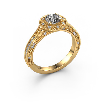 This 14 Carat gold ring is called Alice RND and is set with 0.80 crt diamond. An extraordinary gold vintage ring. One that will surely make the love of your life shine like a diamond! That is what we hope to achieve. This vintage Engagement ring is set with exquisite diamond. Whichever gemstone you choose from our selection, is up to you. The gemstone is selected with great care because we believe your pearl edges Engagement ring must be adorned with nothing but the most beautiful gemstone. Wouldn't you agree? Our expert goldsmith will design your ring in our own crafting studio, where the diamond will be set with great precision. The ring will then be polished till it shines perfectly. Nothing but the best for the love of your life! This jewel is made to shine bright around your finger. Each jewel is hand made with love by our goldsmiths.Are you on a budget? Please feel free to contact us, so we can go discuss your options. We offer our Engagement rings at guaranteed best price, because we make them to order. You won't find such a price anywhere else!Our team adds new designs to our online collection daily. Our designers and goldsmiths work together in creating the best design. We strive to offer a diverse collection of jewels. Perhaps you have a specific jewel design in mind. One you came across somewhere. Please contact us for a free consultation. We will make you an offer, based on a fair price/ quality ratio, that will baffle you.To make it easier for you, we offer a 30 day return policy. Check our terms and conditions.