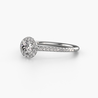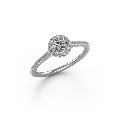The ring shown above is called the Seline rnd 2. We call this type of ring a halo ring because it has one centre gemstone and a band that is also pave set with gemstones. The platinum engagement ring is set with a round 0.40 crt diamond centre stone and the band is pave set with lab-grown diamonds. What makes this exclusive platinum halo ring special are the smaller sized stones embracing the centre stone. This gorgeous engagement ring is called a halo ring because the smaller gemstones give the centre stone a halo of surrounding light. In order for the smaller stones to enhance the centre stone, they have to be placed so there is no interference of light. And that's when our expert goldsmiths come in. Each individual stone is carefully set in the ring by hand. During manufacturing, light fall is constantly monitored to make sure the special halo is still visible. In the end you get a unique engagement ring, with a diamond of your choosing at its centre. You can imagine the effect of a ring of such significance when you give it to her on her special day to shine. After receiving your order, our goldsmiths will start the creative process of making your Seline rnd 2 engagement ring. We don't keep stock. This is advantageous because these costs will not be passed on to you. Therefore, we can offer jewellery at exceptionally low prices.Our team adds new designs to our online collection daily. Our designers and goldsmiths work together in creating the best design. We strive to offer a diverse collection of jewels. Perhaps you have a specific jewel design in mind. One you came across somewhere. Please contact us for a free consultation. We will make you an offer, based on a fair price/ quality ratio, that will baffle you.To make it easier for you, we offer a 30 day return policy. Check our terms and conditions.