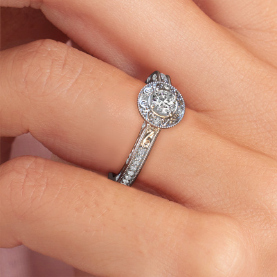 This platinum ring is called Alice RND and is set with 0.43 crt diamond. An extraordinary platinum vintage ring. One that will surely make the love of your life shine like a diamond! That is what we hope to achieve. This vintage Engagement ring is set with exquisite diamond. Whichever gemstone you choose from our selection, is up to you. The gemstone is selected with great care because we believe your pearl edges Engagement ring must be adorned with nothing but the most beautiful gemstone. Wouldn't you agree? Our expert goldsmith will design your ring in our own crafting studio, where the diamond will be set with great precision. The ring will then be polished till it shines perfectly. Nothing but the best for the love of your life! This jewel is made to shine bright around your finger. Each jewel is hand made with love by our goldsmiths.Are you on a budget? Please feel free to contact us, so we can go discuss your options. We offer our Engagement rings at guaranteed best price, because we make them to order. You won't find such a price anywhere else!Our team adds new designs to our online collection daily. Our designers and goldsmiths work together in creating the best design. We strive to offer a diverse collection of jewels. Perhaps you have a specific jewel design in mind. One you came across somewhere. Please contact us for a free consultation. We will make you an offer, based on a fair price/ quality ratio, that will baffle you.To make it easier for you, we offer a 30 day return policy. Check our terms and conditions.