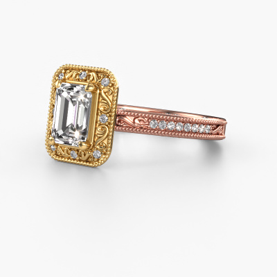 This 14 Carat rose gold ring is called Alice EME and is set with 1.35 crt diamond. An extraordinary rose gold vintage ring. One that will surely make the love of your life shine like a diamond! That is what we hope to achieve. This vintage Engagement ring is set with exquisite diamond. Whichever gemstone you choose from our selection, is up to you. The gemstone is selected with great care because we believe your pearl edges Engagement ring must be adorned with nothing but the most beautiful gemstone. Wouldn't you agree? Our expert goldsmith will design your ring in our own crafting studio, where the diamond will be set with great precision. The ring will then be polished till it shines perfectly. Nothing but the best for the love of your life! This jewel is made just for you by our master goldsmiths in our own studio.By using a combination of the latest modern techniques, combined with ancient crafting, we can make all our Engagement rings in our own studio. Each jewel is made to order. This is advantageous because we can offer you a price you won't find anywhere else.Do you have a specific ring in mind? One you came across somewhere. Please feel free to tell us your wishes and we will turn your design into a unique Engagement ring. You can follow the development of your ring design because we use 3D drawings. This gives you a realistic preview of your design. We will gladly send you a non-binding offer, based on a fair price/ quality ratio. It will amaze you.To make it easier for you, we offer a 30 day return policy. Check our terms and conditions.