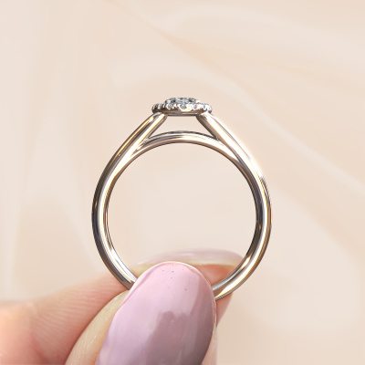 This 14 Carat white gold ring is called Verla ovl 1 and is set with 0.43 crt diamond. This exclusive white gold halo engagement ring is a true work of art! The ornaments are crafted with a lot of patience and great passion. In order to create this ring with great precision, this craft requires a keen eye and skilful hand. A challenge which ignites a fire in our expert goldsmith. The exquisite diamonds are set in a special way so they stand out even more. This gives the ring an even more glamorous appearance. The split band engagement ring is actually unique on its own because of the gemstones which we carefully select especially for this ring. On top of that you select the precious metals which will be used to create a unique ring for the most extraordinary woman in your life! This jewel is made to shine bright around your finger. Each jewel is hand made with love by our goldsmiths.By using a combination of the latest modern techniques, combined with ancient crafting, we can make all our engagement rings in our own studio. Each jewel is made to order. This is advantageous because we can offer you a price you won't find anywhere else.Do you have a specific ring in mind? One you came across somewhere. Please feel free to tell us your wishes and we will turn your design into a unique engagement ring. You can follow the development of your ring design because we use 3D drawings. This gives you a realistic preview of your design. We will gladly send you a non-binding offer, based on a fair price/ quality ratio. It will amaze you.To make it easier for you, we offer a 30 day return policy. Check our terms and conditions.