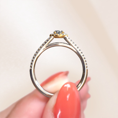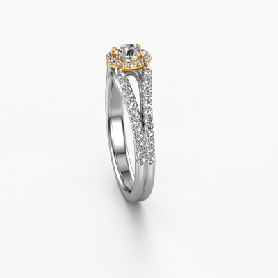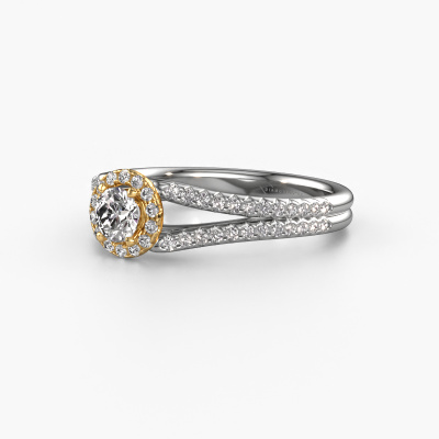 This 14 Carat white gold ring is called Verla rnd 2 and is set with 0.584 crt diamond. This exclusive white gold halo engagement ring is a true work of art! The ornaments are crafted with a lot of patience and great passion. In order to create this ring with great precision, this craft requires a keen eye and skilful hand. A challenge which ignites a fire in our expert goldsmith. The exquisite diamonds are set in a special way so they stand out even more. This gives the ring an even more glamorous appearance. The split band engagement ring is actually unique on its own because of the gemstones which we carefully select especially for this ring. On top of that you select the precious metals which will be used to create a unique ring for the most extraordinary woman in your life! This jewel is made just for you, with attention to detail and design.Because we design and deliver our own rings, we can offer you a engagement ring at a price you won't find anywhere else. A ring is made to order, which helps prevent excess supplies, so we can make you a great price offer. We understand it feels risky, buying your engagement ring online, but we will gladly assist in the designing process, taking your budget into consideration.Our team adds new designs to our online collection daily. Our designers and goldsmiths work together in creating the best design. We strive to offer a diverse collection of jewels. Perhaps you have a specific jewel design in mind. One you came across somewhere. Please contact us for a free consultation. We will make you an offer, based on a fair price/ quality ratio, that will baffle you.To make it easier for you, we offer a 30 day return policy. Check our terms and conditions.