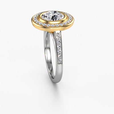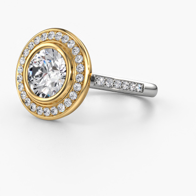The ring shown above is called the Noud 2 RND. We call this type of ring a halo ring because it has one centre gemstone and a band that is also pave set with gemstones. The 14 Carat white gold engagement ring is set with a round 2.00 crt diamond centre stone and the band is pave set with diamonds. What makes this luxury white gold halo ring special are the smaller sized stones embracing the centre stone. This gorgeous engagement ring is called a halo ring because the smaller gemstones give the centre stone a halo of surrounding light. In order for the smaller stones to enhance the centre stone, they have to be placed so there is no interference of light. And that's when our expert goldsmiths come in. Each individual stone is carefully set in the ring by hand. During manufacturing, light fall is constantly monitored to make sure the special halo is still visible. In the end you get a unique engagement ring, with a diamond of your choosing at its centre. You can imagine the effect of a ring of such significance when you give it to her on her special day to shine. By using a combination of the latest modern techniques, combined with ancient crafting, we can make all our engagement rings in our own studio. Each jewel is made to order. This is advantageous because we can offer you a price you won't find anywhere else.Have you found a specific engagement ring somewhere which you would like to give to your loved one? Please feel free to express your wishes to our jewel designers because we would be honoured to turn your design into a luxury engagement ring. You can follow the development of your ring design because we use 3D drawings. This gives you a realistic preview of how your design will look. You can also preorder a dummy. A dummy is a plastic ring, which can be shaped according your ring design. You can try it on and check if its width and size are suitable for you. We will gladly send you a non-binding offer, based on a fair price/ quality ratio. It will amaze you, considering the quality of the ring and gemstones.To make it easier for you, we offer a 30 day return policy. Check our terms and conditions.