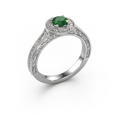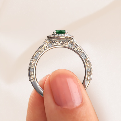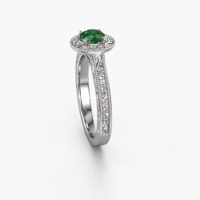 This platinum ring is called Alice RND and is set with 5 mm emerald. An extraordinary platinum vintage ring. One that will surely make the love of your life shine like a diamond! That is what we hope to achieve. This vintage Engagement ring is set with exquisite emerald. Whichever gemstone you choose from our selection, is up to you. The gemstone is selected with great care because we believe your pearl edges Engagement ring must be adorned with nothing but the most beautiful gemstone. Wouldn't you agree? Our expert goldsmith will design your ring in our own crafting studio, where the emerald will be set with great precision. The ring will then be polished till it shines perfectly. Nothing but the best for the love of your life! This jewel is made to shine bright around your finger. Each jewel is hand made with love by our goldsmiths.Are you on a budget? Please feel free to contact us, so we can go discuss your options. We offer our Engagement rings at guaranteed best price, because we make them to order. You won't find such a price anywhere else!Our team adds new designs to our online collection daily. Our designers and goldsmiths work together in creating the best design. We strive to offer a diverse collection of jewels. Perhaps you have a specific jewel design in mind. One you came across somewhere. Please contact us for a free consultation. We will make you an offer, based on a fair price/ quality ratio, that will baffle you.To make it easier for you, we offer a 30 day return policy. Check our terms and conditions.