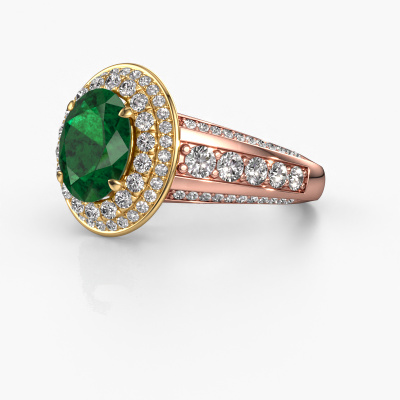 This 14 Carat rose gold ring is called Nancie and is set with 9x7 mm emerald. This exclusive rose gold halo engagement ring is a true work of art! The ornaments are crafted with a lot of patience and great passion. In order to create this ring with great precision, this craft requires a keen eye and skilful hand. A challenge which ignites a fire in our expert goldsmith. The exquisite emerald are set in a special way so they stand out even more. This gives the ring an even more glamorous appearance. The graceful engagement ring is actually unique on its own because of the gemstones which we carefully select especially for this ring. On top of that you select the precious metals which will be used to create a unique ring for the most extraordinary woman in your life! This jewel is created to add sparkle to your finger, each jewel is lovingly made by hand by our goldsmiths.Are you on a budget? Please feel free to contact us, so we can go discuss your options. We offer our engagement rings at guaranteed best price, because we make them to order. You won't find such a price anywhere else!Our designers and goldsmiths work together each day, creating new jewels. Perhaps you have found a nice classic engagement ring somewhere, which can be used to customize your unique ring. Please feel free to contact us. We will make you an offer, based on a fair price/ quality ratio, which will amaze you.To make it easier for you, we offer a 30 day return policy. Check our terms and conditions.