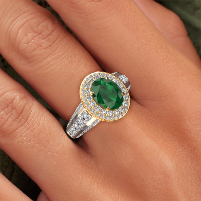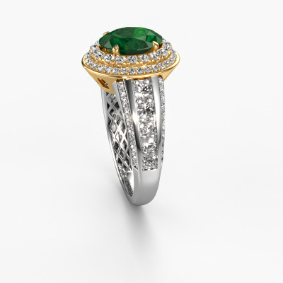 This 14 Carat white gold ring is called Nancie and is set with 9x7 mm emerald. This exclusive white gold halo engagement ring is a true work of art! The ornaments are crafted with a lot of patience and great passion. In order to create this ring with great precision, this craft requires a keen eye and skilful hand. A challenge which ignites a fire in our expert goldsmith. The exquisite emerald are set in a special way so they stand out even more. This gives the ring an even more glamorous appearance. The graceful engagement ring is actually unique on its own because of the gemstones which we carefully select especially for this ring. On top of that you select the precious metals which will be used to create a unique ring for the most extraordinary woman in your life! This jewel is created to add sparkle to your finger, each jewel is lovingly made by hand by our goldsmiths.Are you on a budget? Please feel free to contact us, so we can go discuss your options. We offer our engagement rings at guaranteed best price, because we make them to order. You won't find such a price anywhere else!Our designers and goldsmiths work together each day, creating new jewels. Perhaps you have found a nice classic engagement ring somewhere, which can be used to customize your unique ring. Please feel free to contact us. We will make you an offer, based on a fair price/ quality ratio, which will amaze you.To make it easier for you, we offer a 30 day return policy. Check our terms and conditions.