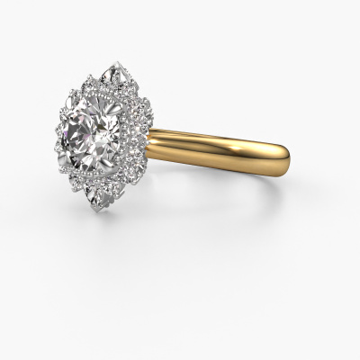 This 14 Carat gold ring is called Susan and is set with 1.52 crt diamond. Is your girlfriend hooked on vintage? Then this gold tasteful engagement ring will surely match her style perfectly. A trendy ring with just a hint of vintage adornment. A truly stunning, romantic design! Especially when you customize your ring to your own liking. This vintage halo engagement ring is set with stunning diamonds. As you can see, you are the boss in selecting a gemstone which matches the style of your girlfriend best. Each gemstone is carefully selected by our merchants whom are spread throughout the world. Nothing but the best gems for our expert goldsmith. After all, it is his crowning glory! Each jewel is made just for you, with attention to detail and design.By using a combination of the latest modern techniques, combined with ancient crafting, we can make all our engagement rings in our own studio. Each jewel is made to order. This is advantageous because we can offer you a price you won't find anywhere else.Our team adds new designs to our online collection daily. Our designers and goldsmiths work together in creating the best design. We strive to offer a diverse collection of jewels. Perhaps you have a specific jewel design in mind. One you came across somewhere. Please contact us for a free consultation. We will make you an offer, based on a fair price/ quality ratio, that will baffle you.To make it easier for you, we offer a 30 day return policy. Check our terms and conditions.