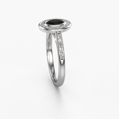 The ring shown above is called the Noud 2 OVL. We call this type of ring a halo ring because it has one centre gemstone and a band that is also pave set with gemstones. The platinum engagement ring is set with a oval 0.60 crt black diamond centre stone and the band is pave set with lab-grown diamonds. What makes this exclusive platinum halo ring special are the smaller sized stones embracing the centre stone. This gorgeous engagement ring is called a halo ring because the smaller gemstones give the centre stone a halo of surrounding light. In order for the smaller stones to enhance the centre stone, they have to be placed so there is no interference of light. And that's when our expert goldsmiths come in. Each individual stone is carefully set in the ring by hand. During manufacturing, light fall is constantly monitored to make sure the special halo is still visible. In the end you get a unique engagement ring, with a black diamond of your choosing at its centre. You can imagine the effect of a ring of such significance when you give it to her on her special day to shine. By using our modern techniques, we can design and customize the finest quality jewels with the utmost care for you. Our engagement rings are always priced 30 percent lower than other jewellers. We make engagement rings to order so we don't have to maintain a large stock. If you have a certain budget, we are more than happy to advice you accordingly.Have you found a specific engagement ring somewhere which you would like to give to your loved one? Please feel free to express your wishes to our jewel designers because we would be honoured to turn your design into a exclusive engagement ring. You can follow the development of your ring design because we use 3D drawings. This gives you a realistic preview of how your design will look. You can also preorder a dummy. A dummy is a plastic ring, which can be shaped according your ring design. You can try it on and check if its width and size are suitable for you. We will gladly send you a non-binding offer, based on a fair price/ quality ratio. It will amaze you, considering the quality of the ring and gemstones.To make it easier for you, we offer a 30 day return policy. Check our terms and conditions.