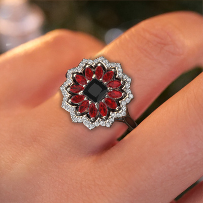 This platinum ring is called Franka and is set with 0.70 crt black diamond. Is your girlfriend hooked on vintage? Then this platinum daring engagement ring will surely match her style perfectly. A trendy ring with just a hint of vintage adornment. A truly stunning, romantic design! Especially when you customize your ring to your own liking. This vintage halo engagement ring is set with stunning black diamonds. As you can see, you are the boss in selecting a gemstone which matches the style of your girlfriend best. Each gemstone is carefully selected by our merchants whom are spread throughout the world. Nothing but the best gems for our expert goldsmith. After all, it is his crowning glory! Each jewel is made just for you by our master goldsmiths in our own studio.By using a combination of the latest modern techniques, combined with ancient crafting, we can make all our engagement rings in our own studio. Each jewel is made to order. This is advantageous because we can offer you a price you won't find anywhere else.Our designers and goldsmiths work together each day, creating new jewels. Perhaps you have found a nice vintage engagement ring somewhere, which can be used to customize your unique ring. Please feel free to contact us. We will make you an offer, based on a fair price/ quality ratio, which will amaze you.To make it easier for you, we offer a 30 day return policy. Check our terms and conditions.