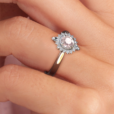 This platinum ring is called Susan and is set with 5 mm morganite champagne. Is your girlfriend hooked on vintage? Then this platinum tasteful engagement ring will surely match her style perfectly. A trendy ring with just a hint of vintage adornment. A truly stunning, romantic design! Especially when you customize your ring to your own liking. This vintage halo engagement ring is set with stunning morganite champagne. As you can see, you are the boss in selecting a gemstone which matches the style of your girlfriend best. Each gemstone is carefully selected by our merchants whom are spread throughout the world. Nothing but the best gems for our expert goldsmith. After all, it is his crowning glory! Each jewel is made just for you, with attention to detail and design.By using a combination of the latest modern techniques, combined with ancient crafting, we can make all our engagement rings in our own studio. Each jewel is made to order. This is advantageous because we can offer you a price you won't find anywhere else.Our team adds new designs to our online collection daily. Our designers and goldsmiths work together in creating the best design. We strive to offer a diverse collection of jewels. Perhaps you have a specific jewel design in mind. One you came across somewhere. Please contact us for a free consultation. We will make you an offer, based on a fair price/ quality ratio, that will baffle you.To make it easier for you, we offer a 30 day return policy. Check our terms and conditions.
