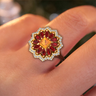 This 14 Carat rose gold ring is called Franka and is set with 4 mm citrin. Is your girlfriend hooked on vintage? Then this rose gold daring engagement ring will surely match her style perfectly. A trendy ring with just a hint of vintage adornment. A truly stunning, romantic design! Especially when you customize your ring to your own liking. This vintage halo engagement ring is set with stunning citrin. As you can see, you are the boss in selecting a gemstone which matches the style of your girlfriend best. Each gemstone is carefully selected by our merchants whom are spread throughout the world. Nothing but the best gems for our expert goldsmith. After all, it is his crowning glory! Each jewel is made just for you by our master goldsmiths in our own studio.By using a combination of the latest modern techniques, combined with ancient crafting, we can make all our engagement rings in our own studio. Each jewel is made to order. This is advantageous because we can offer you a price you won't find anywhere else.Our designers and goldsmiths work together each day, creating new jewels. Perhaps you have found a nice vintage engagement ring somewhere, which can be used to customize your unique ring. Please feel free to contact us. We will make you an offer, based on a fair price/ quality ratio, which will amaze you.To make it easier for you, we offer a 30 day return policy. Check our terms and conditions.