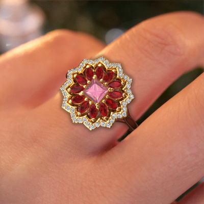 This 14 Carat rose gold ring is called Franka and is set with 4 mm tourmaline pink. Is your girlfriend hooked on vintage? Then this rose gold daring engagement ring will surely match her style perfectly. A trendy ring with just a hint of vintage adornment. A truly stunning, romantic design! Especially when you customize your ring to your own liking. This vintage halo engagement ring is set with stunning tourmaline pink. As you can see, you are the boss in selecting a gemstone which matches the style of your girlfriend best. Each gemstone is carefully selected by our merchants whom are spread throughout the world. Nothing but the best gems for our expert goldsmith. After all, it is his crowning glory! Each jewel is made just for you by our master goldsmiths in our own studio.By using a combination of the latest modern techniques, combined with ancient crafting, we can make all our engagement rings in our own studio. Each jewel is made to order. This is advantageous because we can offer you a price you won't find anywhere else.Our designers and goldsmiths work together each day, creating new jewels. Perhaps you have found a nice vintage engagement ring somewhere, which can be used to customize your unique ring. Please feel free to contact us. We will make you an offer, based on a fair price/ quality ratio, which will amaze you.To make it easier for you, we offer a 30 day return policy. Check our terms and conditions.