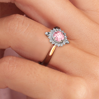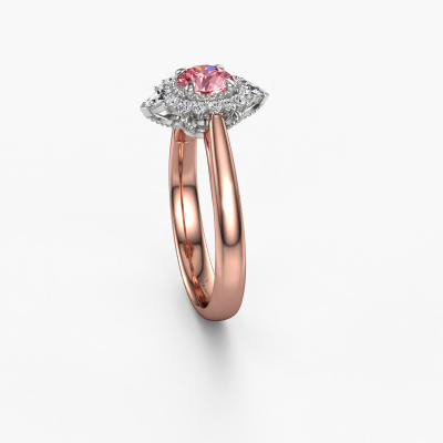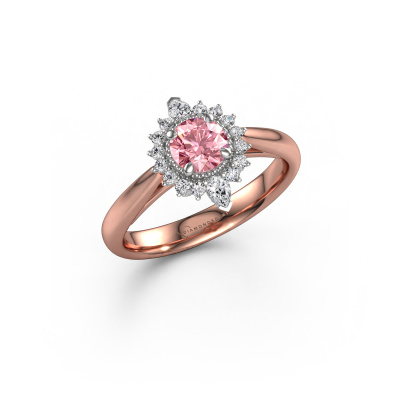 This 14 Carat rose gold ring is called Susan and is set with 5 mm pink lab grown diamond. Is your girlfriend hooked on vintage? Then this rose gold tasteful engagement ring will surely match her style perfectly. A trendy ring with just a hint of vintage adornment. A truly stunning, romantic design! Especially when you customize your ring to your own liking. This vintage halo engagement ring is set with stunning pink lab grown diamonds. As you can see, you are the boss in selecting a gemstone which matches the style of your girlfriend best. Each gemstone is carefully selected by our merchants whom are spread throughout the world. Nothing but the best gems for our expert goldsmith. After all, it is his crowning glory! Each jewel is made just for you, with attention to detail and design.By using a combination of the latest modern techniques, combined with ancient crafting, we can make all our engagement rings in our own studio. Each jewel is made to order. This is advantageous because we can offer you a price you won't find anywhere else.Our team adds new designs to our online collection daily. Our designers and goldsmiths work together in creating the best design. We strive to offer a diverse collection of jewels. Perhaps you have a specific jewel design in mind. One you came across somewhere. Please contact us for a free consultation. We will make you an offer, based on a fair price/ quality ratio, that will baffle you.To make it easier for you, we offer a 30 day return policy. Check our terms and conditions.