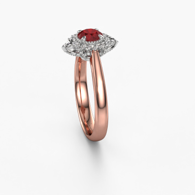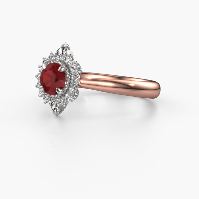 This 14 Carat rose gold ring is called Susan and is set with 5 mm ruby. Is your girlfriend hooked on vintage? Then this rose gold tasteful engagement ring will surely match her style perfectly. A trendy ring with just a hint of vintage adornment. A truly stunning, romantic design! Especially when you customize your ring to your own liking. This vintage halo engagement ring is set with stunning ruby. As you can see, you are the boss in selecting a gemstone which matches the style of your girlfriend best. Each gemstone is carefully selected by our merchants whom are spread throughout the world. Nothing but the best gems for our expert goldsmith. After all, it is his crowning glory! Each jewel is made just for you, with attention to detail and design.By using a combination of the latest modern techniques, combined with ancient crafting, we can make all our engagement rings in our own studio. Each jewel is made to order. This is advantageous because we can offer you a price you won't find anywhere else.Our team adds new designs to our online collection daily. Our designers and goldsmiths work together in creating the best design. We strive to offer a diverse collection of jewels. Perhaps you have a specific jewel design in mind. One you came across somewhere. Please contact us for a free consultation. We will make you an offer, based on a fair price/ quality ratio, that will baffle you.To make it easier for you, we offer a 30 day return policy. Check our terms and conditions.