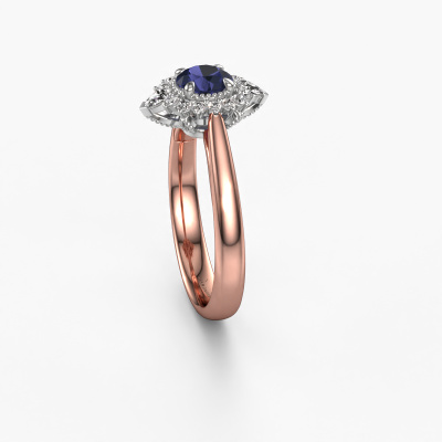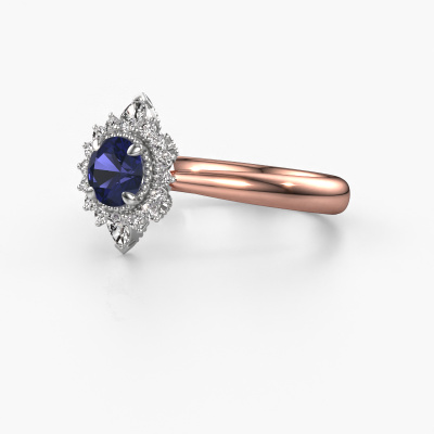 This 14 Carat rose gold ring is called Susan and is set with 5 mm sapphire. Is your girlfriend hooked on vintage? Then this rose gold tasteful engagement ring will surely match her style perfectly. A trendy ring with just a hint of vintage adornment. A truly stunning, romantic design! Especially when you customize your ring to your own liking. This vintage halo engagement ring is set with stunning sapphire. As you can see, you are the boss in selecting a gemstone which matches the style of your girlfriend best. Each gemstone is carefully selected by our merchants whom are spread throughout the world. Nothing but the best gems for our expert goldsmith. After all, it is his crowning glory! Each jewel is made just for you, with attention to detail and design.By using a combination of the latest modern techniques, combined with ancient crafting, we can make all our engagement rings in our own studio. Each jewel is made to order. This is advantageous because we can offer you a price you won't find anywhere else.Our team adds new designs to our online collection daily. Our designers and goldsmiths work together in creating the best design. We strive to offer a diverse collection of jewels. Perhaps you have a specific jewel design in mind. One you came across somewhere. Please contact us for a free consultation. We will make you an offer, based on a fair price/ quality ratio, that will baffle you.To make it easier for you, we offer a 30 day return policy. Check our terms and conditions.