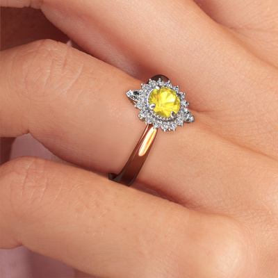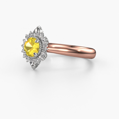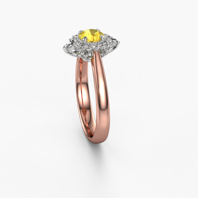 This 14 Carat rose gold ring is called Susan and is set with 5 mm yellow sapphire. Is your girlfriend hooked on vintage? Then this rose gold tasteful engagement ring will surely match her style perfectly. A trendy ring with just a hint of vintage adornment. A truly stunning, romantic design! Especially when you customize your ring to your own liking. This vintage halo engagement ring is set with stunning yellow sapphire. As you can see, you are the boss in selecting a gemstone which matches the style of your girlfriend best. Each gemstone is carefully selected by our merchants whom are spread throughout the world. Nothing but the best gems for our expert goldsmith. After all, it is his crowning glory! Each jewel is made just for you, with attention to detail and design.By using a combination of the latest modern techniques, combined with ancient crafting, we can make all our engagement rings in our own studio. Each jewel is made to order. This is advantageous because we can offer you a price you won't find anywhere else.Our team adds new designs to our online collection daily. Our designers and goldsmiths work together in creating the best design. We strive to offer a diverse collection of jewels. Perhaps you have a specific jewel design in mind. One you came across somewhere. Please contact us for a free consultation. We will make you an offer, based on a fair price/ quality ratio, that will baffle you.To make it easier for you, we offer a 30 day return policy. Check our terms and conditions.