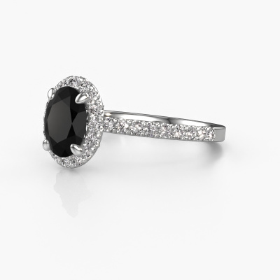 The ring shown above is called the Miranda ovl. We call this type of ring a halo ring because it has one centre gemstone and a band that is also pave set with gemstones. The 14 Carat white gold engagement ring is set with a oval 1.40 crt black diamond centre stone and the band is pave set with lab-grown diamonds. What makes this exclusive white gold halo ring special are the smaller sized stones embracing the centre stone. This gorgeous engagement ring is called a halo ring because the smaller gemstones give the centre stone a halo of surrounding light. In order for the smaller stones to enhance the centre stone, they have to be placed so there is no interference of light. And that's when our expert goldsmiths come in. Each individual stone is carefully set in the ring by hand. During manufacturing, light fall is constantly monitored to make sure the special halo is still visible. In the end you get a unique engagement ring, with a black diamond of your choosing at its centre. You can imagine the effect of a ring of such significance when you give it to her on her special day to shine. By using a combination of the latest modern techniques, combined with ancient crafting, we can make all our engagement rings in our own studio. Each jewel is made to order. This is advantageous because we can offer you a price you won't find anywhere else.Our designers and goldsmiths work together each day, creating new jewels. Perhaps you have found a nice exclusive engagement ring somewhere, which can be used to customize your unique ring. Please feel free to contact us. We will make you an offer, based on a fair price/ quality ratio, which will amaze you.To make it easier for you, we offer a 30 day return policy. Check our terms and conditions.