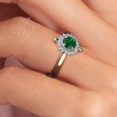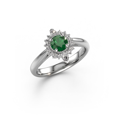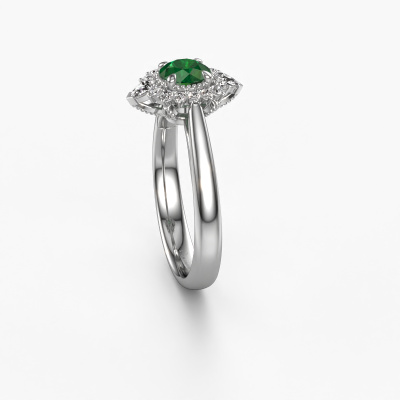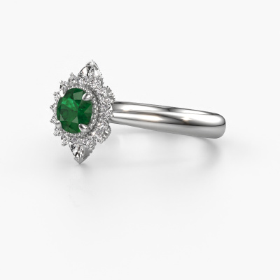 This 14 Carat white gold ring is called Susan and is set with 5 mm emerald. Is your girlfriend hooked on vintage? Then this white gold tasteful engagement ring will surely match her style perfectly. A trendy ring with just a hint of vintage adornment. A truly stunning, romantic design! Especially when you customize your ring to your own liking. This vintage halo engagement ring is set with stunning emerald. As you can see, you are the boss in selecting a gemstone which matches the style of your girlfriend best. Each gemstone is carefully selected by our merchants whom are spread throughout the world. Nothing but the best gems for our expert goldsmith. After all, it is his crowning glory! Each jewel is made just for you, with attention to detail and design.By using a combination of the latest modern techniques, combined with ancient crafting, we can make all our engagement rings in our own studio. Each jewel is made to order. This is advantageous because we can offer you a price you won't find anywhere else.Our team adds new designs to our online collection daily. Our designers and goldsmiths work together in creating the best design. We strive to offer a diverse collection of jewels. Perhaps you have a specific jewel design in mind. One you came across somewhere. Please contact us for a free consultation. We will make you an offer, based on a fair price/ quality ratio, that will baffle you.To make it easier for you, we offer a 30 day return policy. Check our terms and conditions.