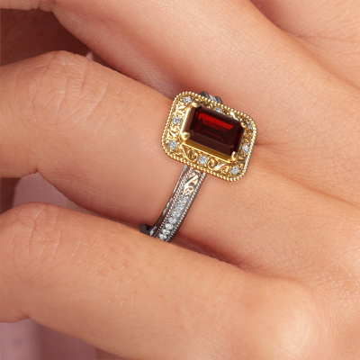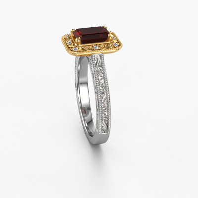 This 14 Carat white gold ring is called Alice EME and is set with 7x5 mm garnet. An extraordinary white gold vintage ring. One that will surely make the love of your life shine like a diamond! That is what we hope to achieve. This vintage Engagement ring is set with exquisite garnet. Whichever gemstone you choose from our selection, is up to you. The gemstone is selected with great care because we believe your pearl edges Engagement ring must be adorned with nothing but the most beautiful gemstone. Wouldn't you agree? Our expert goldsmith will design your ring in our own crafting studio, where the garnet will be set with great precision. The ring will then be polished till it shines perfectly. Nothing but the best for the love of your life! This jewel is made just for you by our master goldsmiths in our own studio.By using a combination of the latest modern techniques, combined with ancient crafting, we can make all our Engagement rings in our own studio. Each jewel is made to order. This is advantageous because we can offer you a price you won't find anywhere else.Do you have a specific ring in mind? One you came across somewhere. Please feel free to tell us your wishes and we will turn your design into a unique Engagement ring. You can follow the development of your ring design because we use 3D drawings. This gives you a realistic preview of your design. We will gladly send you a non-binding offer, based on a fair price/ quality ratio. It will amaze you.To make it easier for you, we offer a 30 day return policy. Check our terms and conditions.
