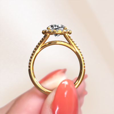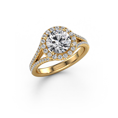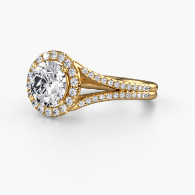 This 14 Carat gold ring is called Verla rnd 2 and is set with 2.48 crt lab grown diamond. This exclusive gold halo engagement ring is a true work of art! The ornaments are crafted with a lot of patience and great passion. In order to create this ring with great precision, this craft requires a keen eye and skilful hand. A challenge which ignites a fire in our expert goldsmith. The exquisite lab-grown diamonds are set in a special way so they stand out even more. This gives the ring an even more glamorous appearance. The split band engagement ring is actually unique on its own because of the gemstones which we carefully select especially for this ring. On top of that you select the precious metals which will be used to create a unique ring for the most extraordinary woman in your life! This jewel is made just for you, with attention to detail and design.Because we design and deliver our own rings, we can offer you a engagement ring at a price you won't find anywhere else. A ring is made to order, which helps prevent excess supplies, so we can make you a great price offer. We understand it feels risky, buying your engagement ring online, but we will gladly assist in the designing process, taking your budget into consideration.Our team adds new designs to our online collection daily. Our designers and goldsmiths work together in creating the best design. We strive to offer a diverse collection of jewels. Perhaps you have a specific jewel design in mind. One you came across somewhere. Please contact us for a free consultation. We will make you an offer, based on a fair price/ quality ratio, that will baffle you.To make it easier for you, we offer a 30 day return policy. Check our terms and conditions.