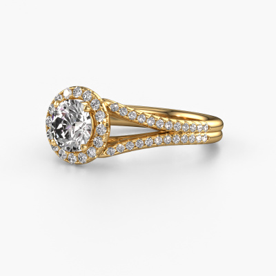 This 14 Carat gold ring is called Verla rnd 2 and is set with 1.42 crt lab grown diamond. This exclusive gold halo engagement ring is a true work of art! The ornaments are crafted with a lot of patience and great passion. In order to create this ring with great precision, this craft requires a keen eye and skilful hand. A challenge which ignites a fire in our expert goldsmith. The exquisite lab-grown diamonds are set in a special way so they stand out even more. This gives the ring an even more glamorous appearance. The split band engagement ring is actually unique on its own because of the gemstones which we carefully select especially for this ring. On top of that you select the precious metals which will be used to create a unique ring for the most extraordinary woman in your life! This jewel is made just for you, with attention to detail and design.Because we design and deliver our own rings, we can offer you a engagement ring at a price you won't find anywhere else. A ring is made to order, which helps prevent excess supplies, so we can make you a great price offer. We understand it feels risky, buying your engagement ring online, but we will gladly assist in the designing process, taking your budget into consideration.Our team adds new designs to our online collection daily. Our designers and goldsmiths work together in creating the best design. We strive to offer a diverse collection of jewels. Perhaps you have a specific jewel design in mind. One you came across somewhere. Please contact us for a free consultation. We will make you an offer, based on a fair price/ quality ratio, that will baffle you.To make it easier for you, we offer a 30 day return policy. Check our terms and conditions.