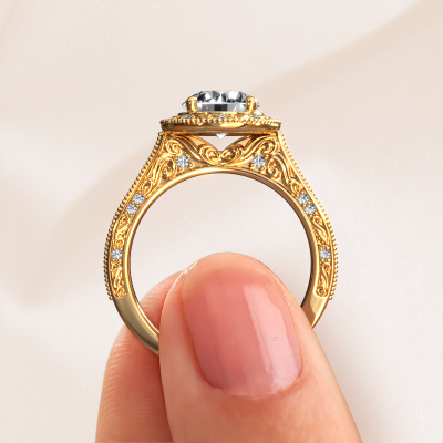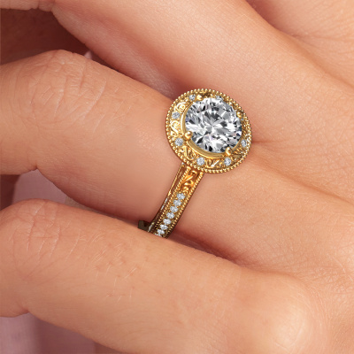 This 14 Carat gold ring is called Alice RND and is set with 1.71 crt lab grown diamond. An extraordinary gold vintage ring. One that will surely make the love of your life shine like a diamond! That is what we hope to achieve. This vintage Engagement ring is set with exquisite lab grown diamond. Whichever gemstone you choose from our selection, is up to you. The gemstone is selected with great care because we believe your pearl edges Engagement ring must be adorned with nothing but the most beautiful gemstone. Wouldn't you agree? Our expert goldsmith will design your ring in our own crafting studio, where the lab grown diamond will be set with great precision. The ring will then be polished till it shines perfectly. Nothing but the best for the love of your life! This jewel is made to shine bright around your finger. Each jewel is hand made with love by our goldsmiths.Are you on a budget? Please feel free to contact us, so we can go discuss your options. We offer our Engagement rings at guaranteed best price, because we make them to order. You won't find such a price anywhere else!Our team adds new designs to our online collection daily. Our designers and goldsmiths work together in creating the best design. We strive to offer a diverse collection of jewels. Perhaps you have a specific jewel design in mind. One you came across somewhere. Please contact us for a free consultation. We will make you an offer, based on a fair price/ quality ratio, that will baffle you.To make it easier for you, we offer a 30 day return policy. Check our terms and conditions.