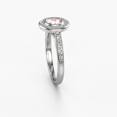The ring shown above is called the Noud 2 RND. We call this type of ring a halo ring because it has one centre gemstone and a band that is also pave set with gemstones. The platinum engagement ring is set with a round 5 mm morganite champagne centre stone and the band is pave set with diamonds. What makes this luxury platinum halo ring special are the smaller sized stones embracing the centre stone. This gorgeous engagement ring is called a halo ring because the smaller gemstones give the centre stone a halo of surrounding light. In order for the smaller stones to enhance the centre stone, they have to be placed so there is no interference of light. And that's when our expert goldsmiths come in. Each individual stone is carefully set in the ring by hand. During manufacturing, light fall is constantly monitored to make sure the special halo is still visible. In the end you get a unique engagement ring, with a morganite champagne of your choosing at its centre. You can imagine the effect of a ring of such significance when you give it to her on her special day to shine. By using a combination of the latest modern techniques, combined with ancient crafting, we can make all our engagement rings in our own studio. Each jewel is made to order. This is advantageous because we can offer you a price you won't find anywhere else.Have you found a specific engagement ring somewhere which you would like to give to your loved one? Please feel free to express your wishes to our jewel designers because we would be honoured to turn your design into a luxury engagement ring. You can follow the development of your ring design because we use 3D drawings. This gives you a realistic preview of how your design will look. You can also preorder a dummy. A dummy is a plastic ring, which can be shaped according your ring design. You can try it on and check if its width and size are suitable for you. We will gladly send you a non-binding offer, based on a fair price/ quality ratio. It will amaze you, considering the quality of the ring and gemstones.To make it easier for you, we offer a 30 day return policy. Check our terms and conditions.