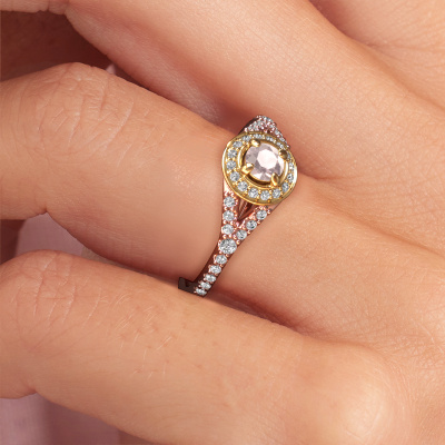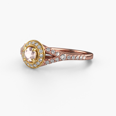 This 14 Carat rose gold ring is called Pamela RND and is set with 4 mm morganite champagne. This exclusive rose gold halo engagement ring is a true work of art! The ornaments are crafted with a lot of patience and great passion. In order to create this ring with great precision, this craft requires a keen eye and skilful hand. A challenge which ignites a fire in our expert goldsmith. The exquisite morganite champagne are set in a special way so they stand out even more. This gives the ring an even more glamorous appearance. The ajour engagement ring is actually unique on its own because of the gemstones which we carefully select especially for this ring. On top of that you select the precious metals which will be used to create a unique ring for the most extraordinary woman in your life! This jewel is unique in every way! Simply customize to your liking,Because we design and deliver our own rings, we can offer you a engagement ring at a price you won't find anywhere else. A ring is made to order, which helps prevent excess supplies, so we can make you a great price offer. We understand it feels risky, buying your engagement ring online, but we will gladly assist in the designing process, taking your budget into consideration.Our team adds new designs to our online collection daily. Our designers and goldsmiths work together in creating the best design. We strive to offer a diverse collection of jewels. Perhaps you have a specific jewel design in mind. One you came across somewhere. Please contact us for a free consultation. We will make you an offer, based on a fair price/ quality ratio, that will baffle you.To make it easier for you, we offer a 30 day return policy. Check our terms and conditions.