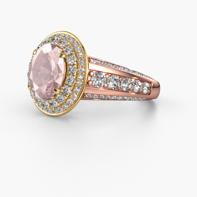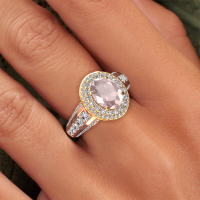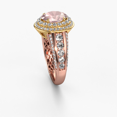 This 14 Carat rose gold ring is called Nancie and is set with 9x7 mm morganite champagne. This exclusive rose gold halo engagement ring is a true work of art! The ornaments are crafted with a lot of patience and great passion. In order to create this ring with great precision, this craft requires a keen eye and skilful hand. A challenge which ignites a fire in our expert goldsmith. The exquisite morganite champagne are set in a special way so they stand out even more. This gives the ring an even more glamorous appearance. The graceful engagement ring is actually unique on its own because of the gemstones which we carefully select especially for this ring. On top of that you select the precious metals which will be used to create a unique ring for the most extraordinary woman in your life! This jewel is created to add sparkle to your finger, each jewel is lovingly made by hand by our goldsmiths.Are you on a budget? Please feel free to contact us, so we can go discuss your options. We offer our engagement rings at guaranteed best price, because we make them to order. You won't find such a price anywhere else!Our designers and goldsmiths work together each day, creating new jewels. Perhaps you have found a nice classic engagement ring somewhere, which can be used to customize your unique ring. Please feel free to contact us. We will make you an offer, based on a fair price/ quality ratio, which will amaze you.To make it easier for you, we offer a 30 day return policy. Check our terms and conditions.