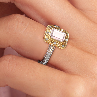 This 14 Carat white gold ring is called Alice EME and is set with 7x5 mm morganite champagne. An extraordinary white gold vintage ring. One that will surely make the love of your life shine like a diamond! That is what we hope to achieve. This vintage Engagement ring is set with exquisite morganite champagne. Whichever gemstone you choose from our selection, is up to you. The gemstone is selected with great care because we believe your pearl edges Engagement ring must be adorned with nothing but the most beautiful gemstone. Wouldn't you agree? Our expert goldsmith will design your ring in our own crafting studio, where the morganite champagne will be set with great precision. The ring will then be polished till it shines perfectly. Nothing but the best for the love of your life! This jewel is made just for you by our master goldsmiths in our own studio.By using a combination of the latest modern techniques, combined with ancient crafting, we can make all our Engagement rings in our own studio. Each jewel is made to order. This is advantageous because we can offer you a price you won't find anywhere else.Do you have a specific ring in mind? One you came across somewhere. Please feel free to tell us your wishes and we will turn your design into a unique Engagement ring. You can follow the development of your ring design because we use 3D drawings. This gives you a realistic preview of your design. We will gladly send you a non-binding offer, based on a fair price/ quality ratio. It will amaze you.To make it easier for you, we offer a 30 day return policy. Check our terms and conditions.