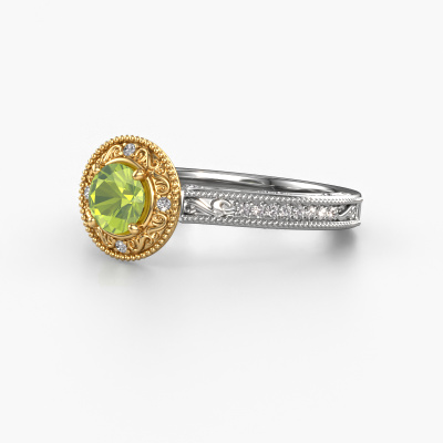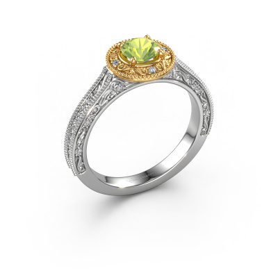 This 14 Carat white gold ring is called Alice RND and is set with 5 mm peridot. An extraordinary white gold vintage ring. One that will surely make the love of your life shine like a diamond! That is what we hope to achieve. This vintage Engagement ring is set with exquisite peridot. Whichever gemstone you choose from our selection, is up to you. The gemstone is selected with great care because we believe your pearl edges Engagement ring must be adorned with nothing but the most beautiful gemstone. Wouldn't you agree? Our expert goldsmith will design your ring in our own crafting studio, where the peridot will be set with great precision. The ring will then be polished till it shines perfectly. Nothing but the best for the love of your life! This jewel is made to shine bright around your finger. Each jewel is hand made with love by our goldsmiths.Are you on a budget? Please feel free to contact us, so we can go discuss your options. We offer our Engagement rings at guaranteed best price, because we make them to order. You won't find such a price anywhere else!Our team adds new designs to our online collection daily. Our designers and goldsmiths work together in creating the best design. We strive to offer a diverse collection of jewels. Perhaps you have a specific jewel design in mind. One you came across somewhere. Please contact us for a free consultation. We will make you an offer, based on a fair price/ quality ratio, that will baffle you.To make it easier for you, we offer a 30 day return policy. Check our terms and conditions.