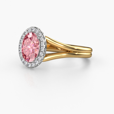 This 14 Carat gold ring is called Verla ovl 1 and is set with 8x6 mm pink lab grown diamond. This exclusive gold halo engagement ring is a true work of art! The ornaments are crafted with a lot of patience and great passion. In order to create this ring with great precision, this craft requires a keen eye and skilful hand. A challenge which ignites a fire in our expert goldsmith. The exquisite pink lab grown diamonds are set in a special way so they stand out even more. This gives the ring an even more glamorous appearance. The split band engagement ring is actually unique on its own because of the gemstones which we carefully select especially for this ring. On top of that you select the precious metals which will be used to create a unique ring for the most extraordinary woman in your life! This jewel is made to shine bright around your finger. Each jewel is hand made with love by our goldsmiths.By using a combination of the latest modern techniques, combined with ancient crafting, we can make all our engagement rings in our own studio. Each jewel is made to order. This is advantageous because we can offer you a price you won't find anywhere else.Do you have a specific ring in mind? One you came across somewhere. Please feel free to tell us your wishes and we will turn your design into a unique engagement ring. You can follow the development of your ring design because we use 3D drawings. This gives you a realistic preview of your design. We will gladly send you a non-binding offer, based on a fair price/ quality ratio. It will amaze you.To make it easier for you, we offer a 30 day return policy. Check our terms and conditions.