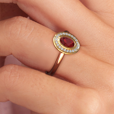 The ring shown above is called the Noud 1 OVL. We call this type of ring a halo ring because it has one centre gemstone and a band that is also pave set with gemstones. The 14 Carat rose gold engagement ring is set with a oval 6x4 mm ruby centre stone and the band is pave set with lab-grown diamonds. What makes this classic rose gold halo ring special are the smaller sized stones embracing the centre stone. This gorgeous engagement ring is called a halo ring because the smaller gemstones give the centre stone a halo of surrounding light. In order for the smaller stones to enhance the centre stone, they have to be placed so there is no interference of light. And that's when our expert goldsmiths come in. Each individual stone is carefully set in the ring by hand. During manufacturing, light fall is constantly monitored to make sure the special halo is still visible. In the end you get a unique engagement ring, with a ruby of your choosing at its centre. You can imagine the effect of a ring of such significance when you give it to her on her special day to shine. By using a combination of the latest modern techniques, combined with ancient crafting, we can make all our engagement rings in our own studio. Each jewel is made to order. This is advantageous because we can offer you a price you won't find anywhere else.Our team adds new designs to our online collection daily. Our designers and goldsmiths work together in creating the best design. We strive to offer a diverse collection of jewels. Perhaps you have a specific jewel design in mind. One you came across somewhere. Please contact us for a free consultation. We will make you an offer, based on a fair price/ quality ratio, that will baffle you.To make it easier for you, we offer a 30 day return policy. Check our terms and conditions.