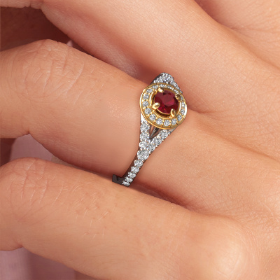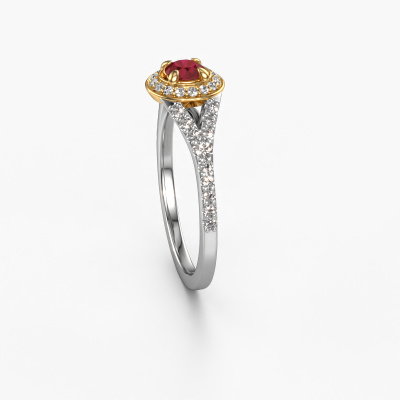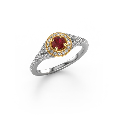 This 14 Carat white gold ring is called Pamela RND and is set with 4 mm ruby. This exclusive white gold halo engagement ring is a true work of art! The ornaments are crafted with a lot of patience and great passion. In order to create this ring with great precision, this craft requires a keen eye and skilful hand. A challenge which ignites a fire in our expert goldsmith. The exquisite ruby are set in a special way so they stand out even more. This gives the ring an even more glamorous appearance. The ajour engagement ring is actually unique on its own because of the gemstones which we carefully select especially for this ring. On top of that you select the precious metals which will be used to create a unique ring for the most extraordinary woman in your life! This jewel is unique in every way! Simply customize to your liking,Because we design and deliver our own rings, we can offer you a engagement ring at a price you won't find anywhere else. A ring is made to order, which helps prevent excess supplies, so we can make you a great price offer. We understand it feels risky, buying your engagement ring online, but we will gladly assist in the designing process, taking your budget into consideration.Our team adds new designs to our online collection daily. Our designers and goldsmiths work together in creating the best design. We strive to offer a diverse collection of jewels. Perhaps you have a specific jewel design in mind. One you came across somewhere. Please contact us for a free consultation. We will make you an offer, based on a fair price/ quality ratio, that will baffle you.To make it easier for you, we offer a 30 day return policy. Check our terms and conditions.