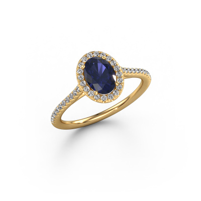 The ring shown above is called the Seline ovl 2. We call this type of ring a halo ring because it has one centre gemstone and a band that is also pave set with gemstones. The 14 Carat gold engagement ring is set with a oval 7x5 mm sapphire centre stone and the band is pave set with diamonds. What makes this exclusive gold halo ring special are the smaller sized stones embracing the centre stone. This gorgeous engagement ring is called a halo ring because the smaller gemstones give the centre stone a halo of surrounding light. In order for the smaller stones to enhance the centre stone, they have to be placed so there is no interference of light. And that's when our expert goldsmiths come in. Each individual stone is carefully set in the ring by hand. During manufacturing, light fall is constantly monitored to make sure the special halo is still visible. In the end you get a unique engagement ring, with a sapphire of your choosing at its centre. You can imagine the effect of a ring of such significance when you give it to her on her special day to shine. After receiving your order, our goldsmiths will start the creative process of making your Seline ovl 2 engagement ring. We don't keep stock. This is advantageous because these costs will not be passed on to you. Therefore, we can offer jewellery at exceptionally low prices.Our team adds new designs to our online collection daily. Our designers and goldsmiths work together in creating the best design. We strive to offer a diverse collection of jewels. Perhaps you have a specific jewel design in mind. One you came across somewhere. Please contact us for a free consultation. We will make you an offer, based on a fair price/ quality ratio, that will baffle you.To make it easier for you, we offer a 30 day return policy. Check our terms and conditions.