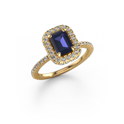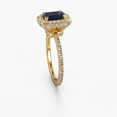 The ring shown above is called the Talitha EME. We call this type of ring a halo ring because it has one centre gemstone and a band that is also pave set with gemstones. The 14 Carat gold engagement ring is set with a emerald cut 7x5 mm sapphire centre stone and the band is pave set with lab-grown diamonds. What makes this luxury gold halo ring special are the smaller sized stones embracing the centre stone. This gorgeous engagement ring is called a halo ring because the smaller gemstones give the centre stone a halo of surrounding light. In order for the smaller stones to enhance the centre stone, they have to be placed so there is no interference of light. And that's when our expert goldsmiths come in. Each individual stone is carefully set in the ring by hand. During manufacturing, light fall is constantly monitored to make sure the special halo is still visible. In the end you get a unique engagement ring, with a sapphire of your choosing at its centre. You can imagine the effect of a ring of such significance when you give it to her on her special day to shine. By using our modern techniques, we can design and customize the finest quality jewels with the utmost care for you. Our engagement rings are always priced 30 percent lower than other jewellers. We make engagement rings to order so we don't have to maintain a large stock. If you have a certain budget, we are more than happy to advice you accordingly.Our team adds new designs to our online collection daily. Our designers and goldsmiths work together in creating the best design. We strive to offer a diverse collection of jewels. Perhaps you have a specific jewel design in mind. One you came across somewhere. Please contact us for a free consultation. We will make you an offer, based on a fair price/ quality ratio, that will baffle you.To make it easier for you, we offer a 30 day return policy. Check our terms and conditions.