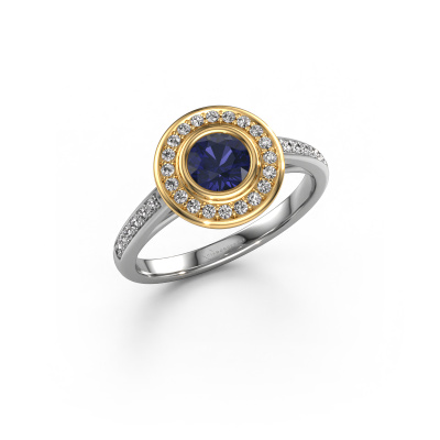 The ring shown above is called the Noud 2 RND. We call this type of ring a halo ring because it has one centre gemstone and a band that is also pave set with gemstones. The 14 Carat white gold engagement ring is set with a round 5 mm sapphire centre stone and the band is pave set with diamonds. What makes this luxury white gold halo ring special are the smaller sized stones embracing the centre stone. This gorgeous engagement ring is called a halo ring because the smaller gemstones give the centre stone a halo of surrounding light. In order for the smaller stones to enhance the centre stone, they have to be placed so there is no interference of light. And that's when our expert goldsmiths come in. Each individual stone is carefully set in the ring by hand. During manufacturing, light fall is constantly monitored to make sure the special halo is still visible. In the end you get a unique engagement ring, with a sapphire of your choosing at its centre. You can imagine the effect of a ring of such significance when you give it to her on her special day to shine. By using a combination of the latest modern techniques, combined with ancient crafting, we can make all our engagement rings in our own studio. Each jewel is made to order. This is advantageous because we can offer you a price you won't find anywhere else.Have you found a specific engagement ring somewhere which you would like to give to your loved one? Please feel free to express your wishes to our jewel designers because we would be honoured to turn your design into a luxury engagement ring. You can follow the development of your ring design because we use 3D drawings. This gives you a realistic preview of how your design will look. You can also preorder a dummy. A dummy is a plastic ring, which can be shaped according your ring design. You can try it on and check if its width and size are suitable for you. We will gladly send you a non-binding offer, based on a fair price/ quality ratio. It will amaze you, considering the quality of the ring and gemstones.To make it easier for you, we offer a 30 day return policy. Check our terms and conditions.