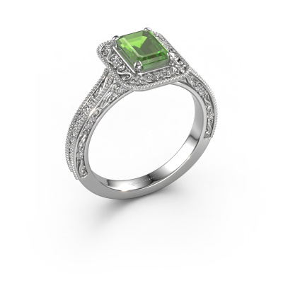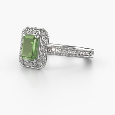 This platinum ring is called Alice EME and is set with 7x5 mm tourmaline green. An extraordinary platinum vintage ring. One that will surely make the love of your life shine like a diamond! That is what we hope to achieve. This vintage Engagement ring is set with exquisite tourmaline green. Whichever gemstone you choose from our selection, is up to you. The gemstone is selected with great care because we believe your pearl edges Engagement ring must be adorned with nothing but the most beautiful gemstone. Wouldn't you agree? Our expert goldsmith will design your ring in our own crafting studio, where the tourmaline green will be set with great precision. The ring will then be polished till it shines perfectly. Nothing but the best for the love of your life! This jewel is made just for you by our master goldsmiths in our own studio.By using a combination of the latest modern techniques, combined with ancient crafting, we can make all our Engagement rings in our own studio. Each jewel is made to order. This is advantageous because we can offer you a price you won't find anywhere else.Do you have a specific ring in mind? One you came across somewhere. Please feel free to tell us your wishes and we will turn your design into a unique Engagement ring. You can follow the development of your ring design because we use 3D drawings. This gives you a realistic preview of your design. We will gladly send you a non-binding offer, based on a fair price/ quality ratio. It will amaze you.To make it easier for you, we offer a 30 day return policy. Check our terms and conditions.