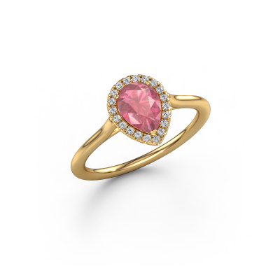 This 14 Carat gold ring is called Seline per 1 and is set with 7x5 mm tourmaline pink. This exclusive gold halo engagement ring is a true work of art! The ornaments are crafted with a lot of patience and great passion. In order to create this ring with great precision, this craft requires a keen eye and skilful hand. A challenge which ignites a fire in our expert goldsmith. The exquisite tourmaline pink are set in a special way so they stand out even more. This gives the ring an even more glamorous appearance. The charming engagement ring is actually unique on its own because of the gemstones which we carefully select especially for this ring. On top of that you select the precious metals which will be used to create a unique ring for the most extraordinary woman in your life! This jewel is made with passion and love by one of our master goldsmiths.After receiving your order, our goldsmiths will start the creative process of making your Seline per 1 engagement ring. We don't keep stock. This is advantageous because these costs will not be passed on to you. Therefore, we can offer jewellery at exceptionally low prices.Our team adds new designs to our online collection daily. Our designers and goldsmiths work together in creating the best design. We strive to offer a diverse collection of jewels. Perhaps you have a specific jewel design in mind. One you came across somewhere. Please contact us for a free consultation. We will make you an offer, based on a fair price/ quality ratio, that will baffle you.To make it easier for you, we offer a 30 day return policy. Check our terms and conditions.