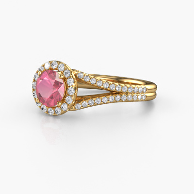 This 14 Carat gold ring is called Verla rnd 2 and is set with 6.5 mm tourmaline pink. This exclusive gold halo engagement ring is a true work of art! The ornaments are crafted with a lot of patience and great passion. In order to create this ring with great precision, this craft requires a keen eye and skilful hand. A challenge which ignites a fire in our expert goldsmith. The exquisite tourmaline pink are set in a special way so they stand out even more. This gives the ring an even more glamorous appearance. The split band engagement ring is actually unique on its own because of the gemstones which we carefully select especially for this ring. On top of that you select the precious metals which will be used to create a unique ring for the most extraordinary woman in your life! This jewel is made just for you, with attention to detail and design.Because we design and deliver our own rings, we can offer you a engagement ring at a price you won't find anywhere else. A ring is made to order, which helps prevent excess supplies, so we can make you a great price offer. We understand it feels risky, buying your engagement ring online, but we will gladly assist in the designing process, taking your budget into consideration.Our team adds new designs to our online collection daily. Our designers and goldsmiths work together in creating the best design. We strive to offer a diverse collection of jewels. Perhaps you have a specific jewel design in mind. One you came across somewhere. Please contact us for a free consultation. We will make you an offer, based on a fair price/ quality ratio, that will baffle you.To make it easier for you, we offer a 30 day return policy. Check our terms and conditions.