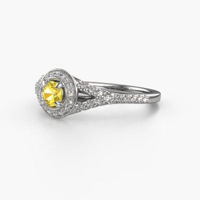 This platinum ring is called Pamela RND and is set with 4 mm yellow sapphire. This exclusive platinum halo engagement ring is a true work of art! The ornaments are crafted with a lot of patience and great passion. In order to create this ring with great precision, this craft requires a keen eye and skilful hand. A challenge which ignites a fire in our expert goldsmith. The exquisite yellow sapphire are set in a special way so they stand out even more. This gives the ring an even more glamorous appearance. The ajour engagement ring is actually unique on its own because of the gemstones which we carefully select especially for this ring. On top of that you select the precious metals which will be used to create a unique ring for the most extraordinary woman in your life! This jewel is unique in every way! Simply customize to your liking,Because we design and deliver our own rings, we can offer you a engagement ring at a price you won't find anywhere else. A ring is made to order, which helps prevent excess supplies, so we can make you a great price offer. We understand it feels risky, buying your engagement ring online, but we will gladly assist in the designing process, taking your budget into consideration.Our team adds new designs to our online collection daily. Our designers and goldsmiths work together in creating the best design. We strive to offer a diverse collection of jewels. Perhaps you have a specific jewel design in mind. One you came across somewhere. Please contact us for a free consultation. We will make you an offer, based on a fair price/ quality ratio, that will baffle you.To make it easier for you, we offer a 30 day return policy. Check our terms and conditions.