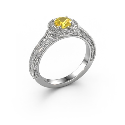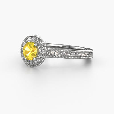 This platinum ring is called Alice RND and is set with 5 mm yellow sapphire. An extraordinary platinum vintage ring. One that will surely make the love of your life shine like a diamond! That is what we hope to achieve. This vintage Engagement ring is set with exquisite yellow sapphire. Whichever gemstone you choose from our selection, is up to you. The gemstone is selected with great care because we believe your pearl edges Engagement ring must be adorned with nothing but the most beautiful gemstone. Wouldn't you agree? Our expert goldsmith will design your ring in our own crafting studio, where the yellow sapphire will be set with great precision. The ring will then be polished till it shines perfectly. Nothing but the best for the love of your life! This jewel is made to shine bright around your finger. Each jewel is hand made with love by our goldsmiths.Are you on a budget? Please feel free to contact us, so we can go discuss your options. We offer our Engagement rings at guaranteed best price, because we make them to order. You won't find such a price anywhere else!Our team adds new designs to our online collection daily. Our designers and goldsmiths work together in creating the best design. We strive to offer a diverse collection of jewels. Perhaps you have a specific jewel design in mind. One you came across somewhere. Please contact us for a free consultation. We will make you an offer, based on a fair price/ quality ratio, that will baffle you.To make it easier for you, we offer a 30 day return policy. Check our terms and conditions.