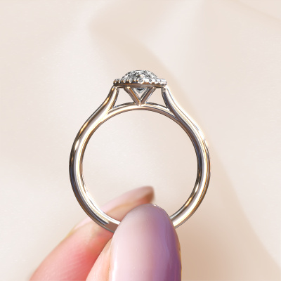 This 14 Carat white gold ring is called Seline per 1 and is set with 7x5 mm zirconia. This exclusive white gold halo engagement ring is a true work of art! The ornaments are crafted with a lot of patience and great passion. In order to create this ring with great precision, this craft requires a keen eye and skilful hand. A challenge which ignites a fire in our expert goldsmith. The exquisite cz-stones are set in a special way so they stand out even more. This gives the ring an even more glamorous appearance. The charming engagement ring is actually unique on its own because of the gemstones which we carefully select especially for this ring. On top of that you select the precious metals which will be used to create a unique ring for the most extraordinary woman in your life! This jewel is made with passion and love by one of our master goldsmiths.After receiving your order, our goldsmiths will start the creative process of making your Seline per 1 engagement ring. We don't keep stock. This is advantageous because these costs will not be passed on to you. Therefore, we can offer jewellery at exceptionally low prices.Our team adds new designs to our online collection daily. Our designers and goldsmiths work together in creating the best design. We strive to offer a diverse collection of jewels. Perhaps you have a specific jewel design in mind. One you came across somewhere. Please contact us for a free consultation. We will make you an offer, based on a fair price/ quality ratio, that will baffle you.To make it easier for you, we offer a 30 day return policy. Check our terms and conditions.