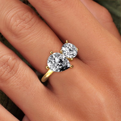 This 14 Carat gold ring is called Toi et Moi PER-RND and is set with lab grown diamond. How would you describe the style of the love of your life? Does she have a unique sense of style? This stunning sublime gold engagement ring can be custom-made to your own or her liking. Our lab-grown diamonds gemstones have been carefully selected because we believe your fantasy engagement ring must be adorned with nothing but the most beautiful gemstone. Don't you agree? This jewel is unique in every way! Simply customize to your liking,By using our modern techniques, we can design and customize the finest quality jewels with the utmost care for you. Our engagement rings are always priced 30 percent lower than other jewellers. We make engagement rings to order so we don't have to maintain a large stock. If you have a certain budget, we are more than happy to advice you accordingly.Our designers and goldsmiths work together each day, creating new jewels. Perhaps you have found a nice fantasy engagement ring somewhere, which can be used to customize your unique ring. Please feel free to contact us. We will make you an offer, based on a fair price/ quality ratio, which will amaze you.To make it easier for you, we offer a 30 day return policy. Check our terms and conditions.