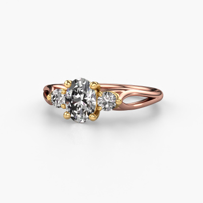 This 14 Carat rose gold ring is called Amie OVL and is set with 0.900 crt lab grown diamond. What is it that makes your relationship unique? What is it about her that makes you want to bend down on one knee? The unique bond between the two of you is emphasized by an equally unique ring. A one of a kind stylish 3-stone engagement ring made especially for her. That is why this fantasy ring fits her like a glove. Each specific detail of this stylish rose gold lab grown diamond set engagement ring is hand-picked, crafted and polished by our expert goldsmith. The result is an exquisite ring, unique and perfectly crafted to perfection. That is what our expert Goldsmiths strive for. This jewel is made to shine bright around your finger. Each jewel is hand made with love by our goldsmiths.By using our modern techniques, we can design and customize the finest quality jewels with the utmost care for you. Our engagement rings are always priced 30 percent lower than other jewellers. We make engagement rings to order so we don't have to maintain a large stock. If you have a certain budget, we are more than happy to advice you accordingly.Do you have a specific ring in mind? One you came across somewhere. Please feel free to tell us your wishes and we will turn your design into a unique engagement ring. You can follow the development of your ring design because we use 3D drawings. This gives you a realistic preview of your design. We will gladly send you a non-binding offer, based on a fair price/ quality ratio. It will amaze you.To make it easier for you, we offer a 30 day return policy. Check our terms and conditions.