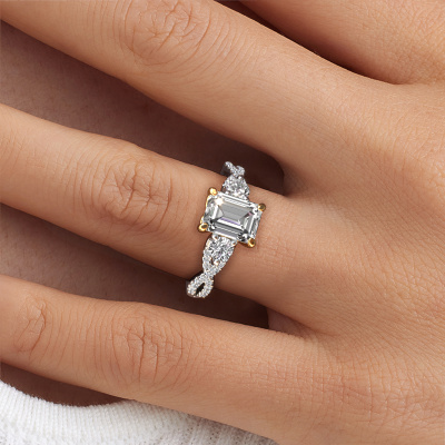 This 14 Carat white gold ring is called Marilou EME and is set with lab grown diamond. How would you describe the style of the love of your life? Does she have a unique sense of style? This stunning split band white gold engagement ring can be custom-made to your own or her liking. Our lab-grown diamonds gemstones have been carefully selected because we believe your luxury engagement ring must be adorned with nothing but the most beautiful gemstone. Don't you agree? This jewel is made to shine bright around your finger. Each jewel is hand made with love by our goldsmiths.After receiving your order, our goldsmiths will start the creative process of making your Marilou EME engagement ring. We don't keep stock. This is advantageous because these costs will not be passed on to you. Therefore, we can offer jewellery at exceptionally low prices.Do you have a specific ring in mind? One you came across somewhere. Please feel free to tell us your wishes and we will turn your design into a unique engagement ring. You can follow the development of your ring design because we use 3D drawings. This gives you a realistic preview of your design. We will gladly send you a non-binding offer, based on a fair price/ quality ratio. It will amaze you.To make it easier for you, we offer a 30 day return policy. Check our terms and conditions.