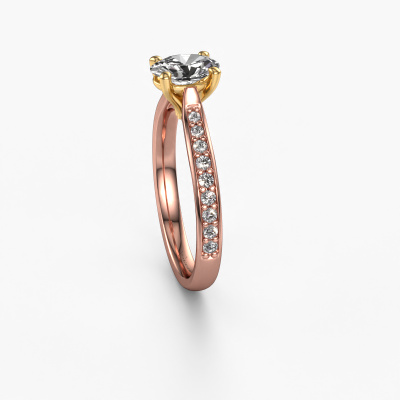 The ring shown above is called the Mignon ovl 2, we call this a solitaire ring because it contains a single gemstone. The engagement ring is made in 14 Carat rose gold and has a oval lab grown diamond of 0.70 crt. The cool thing about our configurator is that you can compile your own piece of jewellery, into a completely personalized one. This solitaire ring is crafted in the precious metals rose gold with gold, but of course you are free to pick your own colours. Each piece of jewellery is made with passion and love by one of our master goldsmiths.The solitaire ring is a special type of engagement ring. Its open prong setting allows light to strike the gemstone from various angles. This chic engagement ring is a stunning eye-catcher because of the high positioning of the gemstone. In order for you to commemorate your proposal with a unique ring, we carefully adorn this solitaire ring by hand. The love of your life deserves nothing but the best. After receiving your order, our goldsmiths will passionately start the creative process of making your engagement ring in our own studio. Because we don't have a big stockpile, these costs will not be passed on to you. Our pricing is proof of that! We offer top quality jewels at lowest price, guaranteed.Our team adds new designs to our online collection daily. Our designers and goldsmiths work together in creating the best design. We strive to offer a diverse collection of jewels. Perhaps you have a specific jewel design in mind. One you came across somewhere. Please contact us for a free consultation. We will make you an offer, based on a fair price/ quality ratio, that will baffle you.To make it easier for you, we offer a 30 day return policy. Check our terms and conditions.