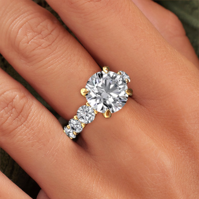 The ring shown above is called the Deja. We call this type of ring a pavé solitaire ring because it has one centre gemstone and a band that is also pave set with gemstones. This engagement ring is made in 14 Carat gold set with a 5.00 crt round lab grown diamond, and pave set lab-grown diamonds at the sides. Each piece of jewellery is made just for you by our master goldsmiths in our own studio.This exclusive gold pavé solitaire engagement ring has an exquisite round lab grown diamond centre stone. To further accentuate the centre stone, the band is set full with more lab-grown diamonds. Its open prong setting allows light to strike the lab grown diamond from various angles and this adds sparkle to your lab grown diamond ring. The photo shown above depicts the goldsmith's carefully handcrafted details of the ring. The high positioning of the centre stone is truly eye-catching. The perfect engagement ring for the crown jewel of your life!By using a combination of the latest modern techniques, combined with ancient crafting, we can make all our engagement rings in our own studio. Each jewel is made to order. This is advantageous because we can offer you a price you won't find anywhere else.Our team adds new designs to our online collection daily. Our designers and goldsmiths work together in creating the best design. We strive to offer a diverse collection of jewels. Perhaps you have a specific jewel design in mind. One you came across somewhere. Please contact us for a free consultation. We will make you an offer, based on a fair price/ quality ratio, that will baffle you.To make it easier for you, we offer a 30 day return policy. Check our terms and conditions.