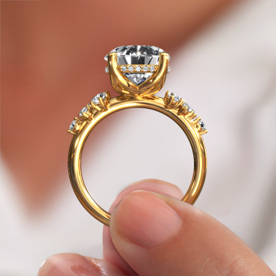This 14 Carat gold ring is called Emma OVL and is set with lab grown diamond. How would you describe the style of the love of your life? Does she have a unique sense of style? This stunning sublime gold engagement ring can be custom-made to your own or her liking. Our lab-grown diamonds gemstones have been carefully selected because we believe your fantasy engagement ring must be adorned with nothing but the most beautiful gemstone. Don't you agree? This jewel is made by a team of passionate goldsmiths and jewel designers. This will make your crown jewel truly eye-catching.By using a combination of the latest modern techniques, combined with ancient crafting, we can make all our engagement rings in our own studio. Each jewel is made to order. This is advantageous because we can offer you a price you won't find anywhere else.Different styles of new rings are made daily by our team. Perhaps you have found a pavé solitaire engagement ring somewhere. One you would like to give to your loved one. Please feel free to share your thoughts and design with our jewel designers. We would love to turn your design into a fantasy engagement ring. You can follow the development of your ring design because we use very detailed 3D drawings. On top of that, you can order a dummy of the design. A dummy is a plastic ring, which can be shaped according your ring design. You can try it on and check if the engagement ring is up to standard. We will gladly send you a non-binding offer, based on a fair price/ quality ratio. The offer will baffle you, considering the quality of the ring and gemstones.To make it easier for you, we offer a 30 day return policy. Check our terms and conditions.